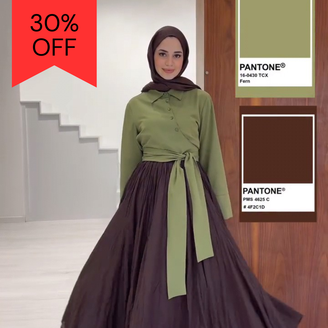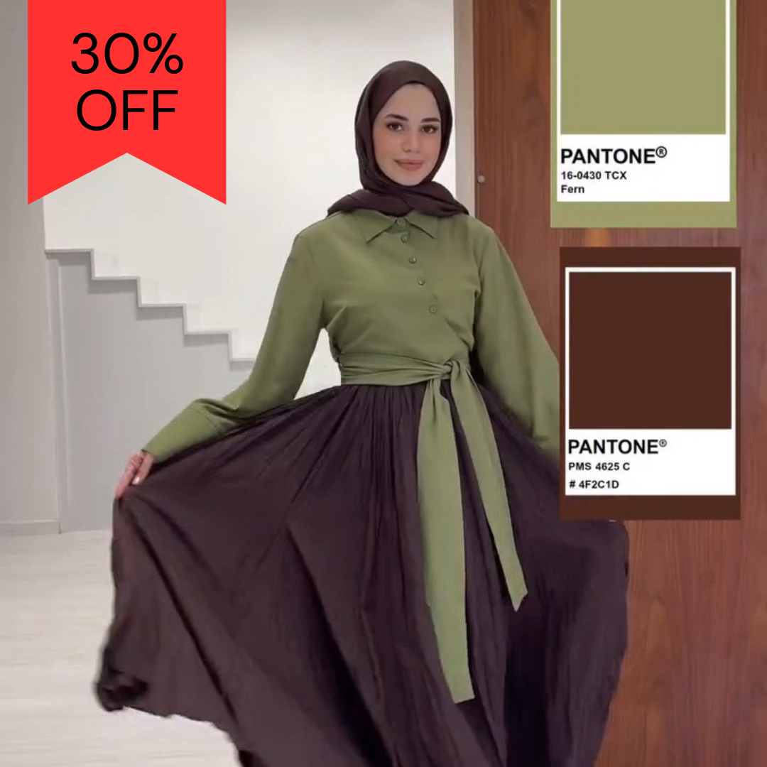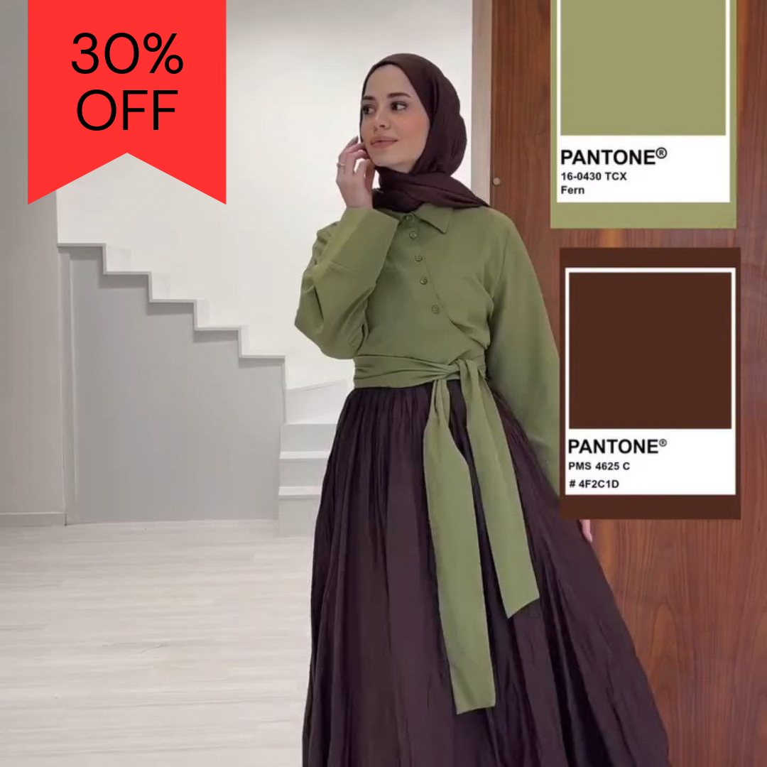 ✨ أضيفي لمسة من الرقي لخزانة ملابسك مع هذا الفستان العصري المصمم بألوان متناسقة مستوحاة من لوحة Pantone العالمية: